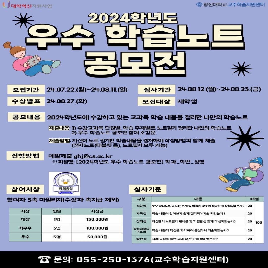 [교수학습지원센터]2024학년도 우수 학습노트 공모전 안내(24.7.22~8.11.)