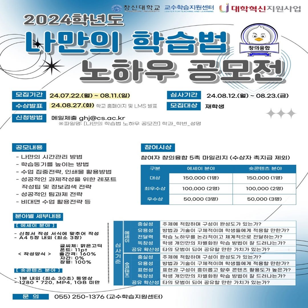 [교수학습지원센터]2024학년도 나만의 학습법 노하우 공모전 안내(24.7.22~8.11.)