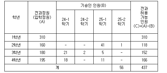 1) 간호학과, 응급구조학과, 물리치료학과, 유아교육과로의 전과는 불허함