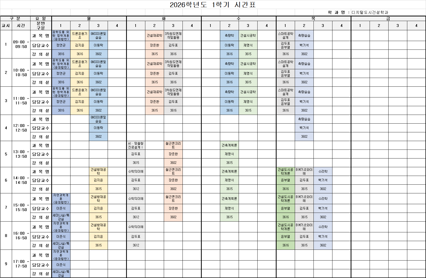 2026학년도 1학기 수업시간표