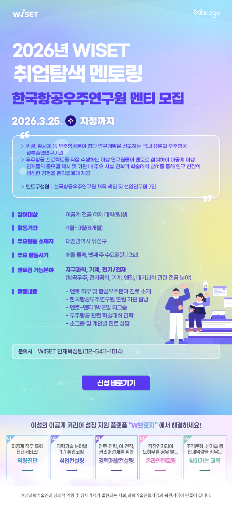 한국여성과학기술인육성재단(WISET)에서 진행하는 ‘취업탐색 멘토링’ 프로그램 안내드립니다.